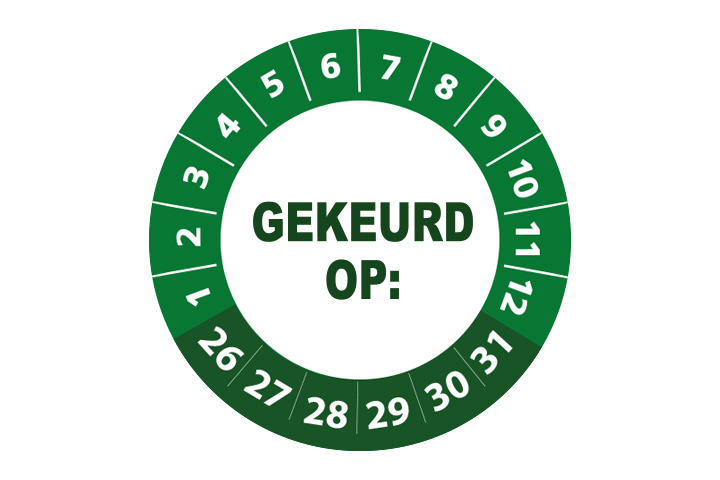 Deze keuringsstickers hebben een diameter van 3 cm en worden geleverd met een UV beschermlaag. Ze zijn daarom ook geschikt voor outdoor gebruik en kunnen prima tegen een stootje. Heeft u speciale wensen? Bel of mail dan gerust voor een offerte op maat!