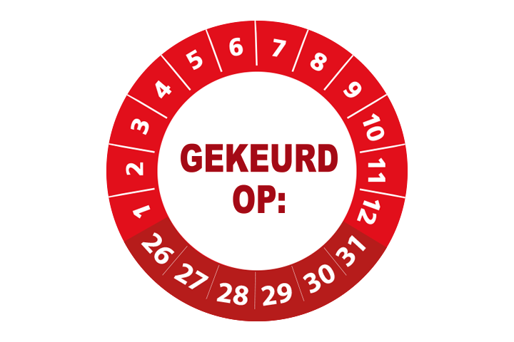 Deze keuringsstickers hebben een diameter van 3 cm en worden geleverd met een UV beschermlaag. Ze zijn daarom ook geschikt voor outdoor gebruik en kunnen prima tegen een stootje. Heeft u speciale wensen? Bel of mail dan gerust voor een offerte op maat!