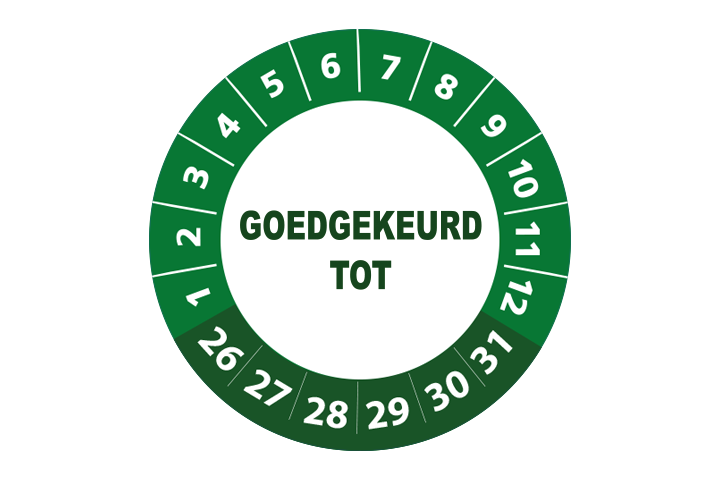 Bestel hier uw ‘goedgekeurd tot 2026’ keuringsstickers op makkelijk hanteerbare rollen.