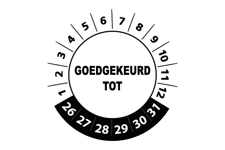 Bestel hier uw ‘goedgekeurd tot 2026’ keuringsstickers op makkelijk hanteerbare rollen.