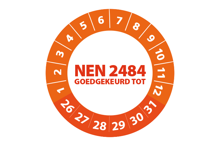 NEN 2484 goedgekeurd oranje 2026 op rol