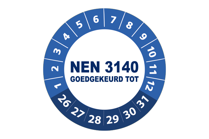 Bestel hier uw ‘NEN 3140 goedgekeurd tot 2026’ keuringsstickers op makkelijk hanteerbare rollen.