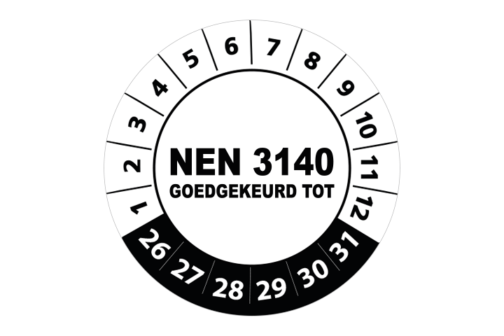 Bestel hier uw ‘NEN 3140 goedgekeurd tot 2026’ keuringsstickers op makkelijk hanteerbare rollen.