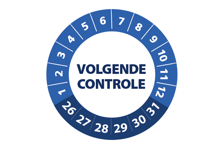 Bestel hier uw ‘volgende controle 2026’ keuringsstickers op makkelijk hanteerbare rollen.
