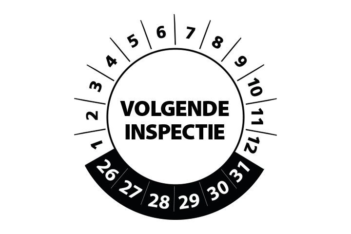 Bestel hier uw ‘volgende inspectie 2026’ keuringsstickers op makkelijk hanteerbare rollen.